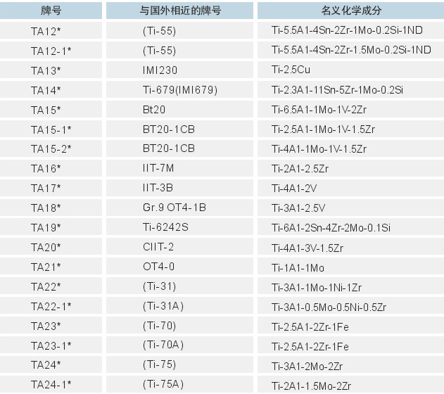 鈦及鈦合金牌號名義化學(xué)成分及國外相近的牌號對照3