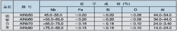 鈮鋁合金技術(shù)參數(shù)